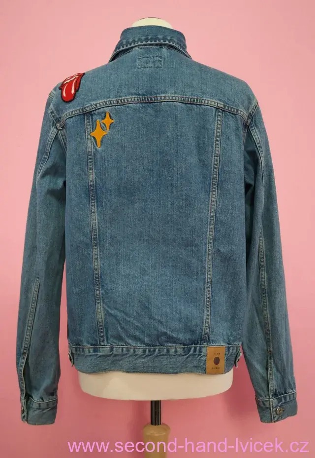 GLOBALFUNK Denmark džínová bunda s nášivkami vel. L