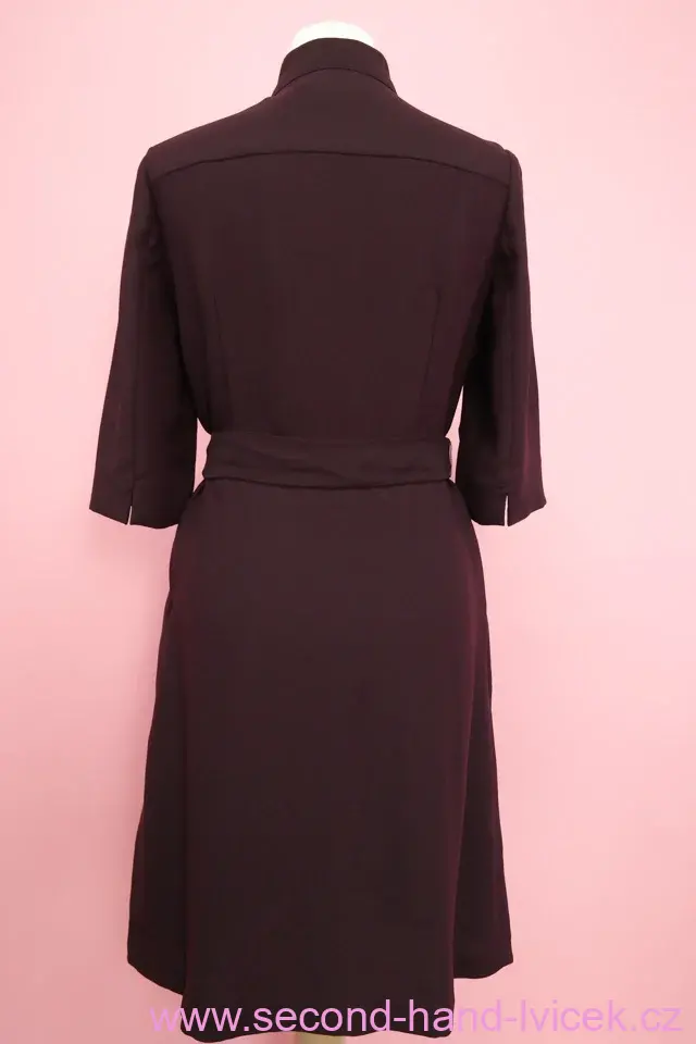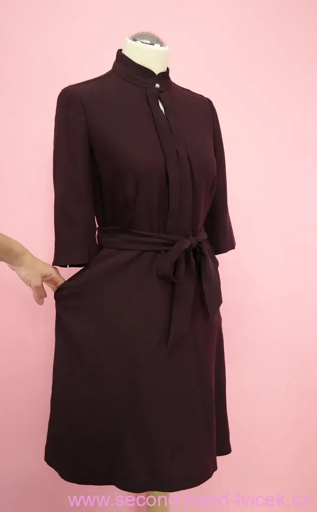 HOBBS tmavě vínové šaty s páskem vel. 36