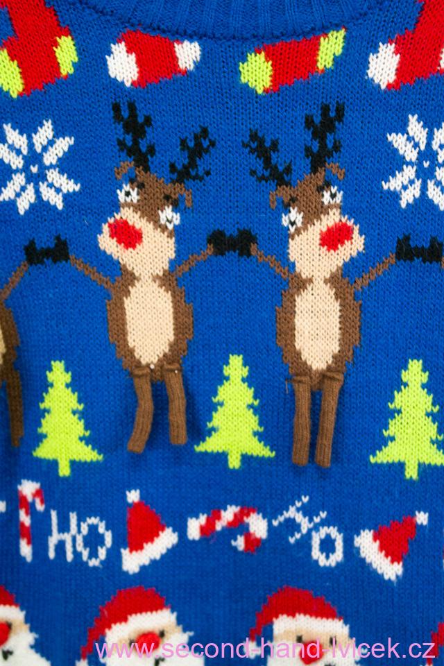 Modrý vánoční svetr se sobíky vel. 98