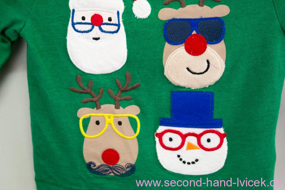 Zelené vánoční triko s dlouhým rukávem vel.74
